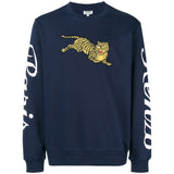 Offbeat French fashion house Kenzo, originally founded by the Japanese creative visionary Kenzo Takada, is renowned for its eclectic, colourful designs. This ink blue jumping tiger sweatshirt is crafted from cotton and features a crew neck, long sleeves, a slogan detail, a relaxed shape and an embroidered tiger detail.