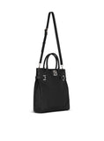 BALMAIN B-BUZZ 36 MONOGRAMMED CANVAS AND LEATHER TOTE, BLACK