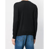 The carefree Moschino mode is defined by classic Italian leather craft imbibed with a sense of pop culture extravagance and humour. Jeremy Scott keeps the heritage of the brand alive, whilst putting his convivial stamp on the brands aesthetic. Black virgin wool Couture Milano Sweater featuring a round neck, long sleeves and a ribbed hem and cuffs.