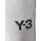 Grey cotton logo track pants from Y-3 featuring a front logo patch, an elasticated waistband and a tapered leg.