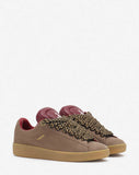LANVIN X FUTURE HYPER CURB SNEAKERS IN LEATHER AND SUEDE, TAUPE/RED
