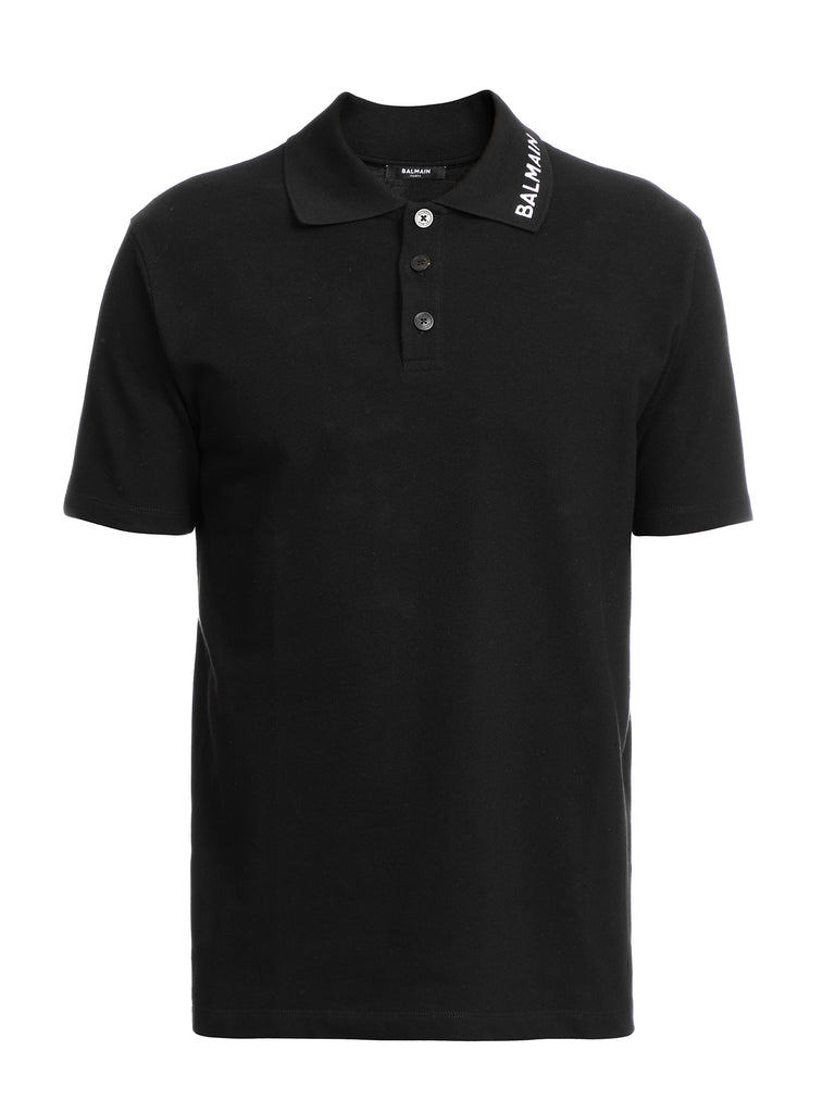 BALMAIN EMBROIDERED POLO SHIRT, BLACK