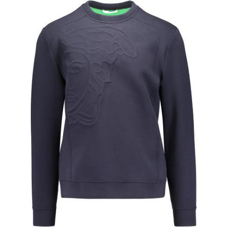 Black wool-blend Medusa sweater from Versace Collection.